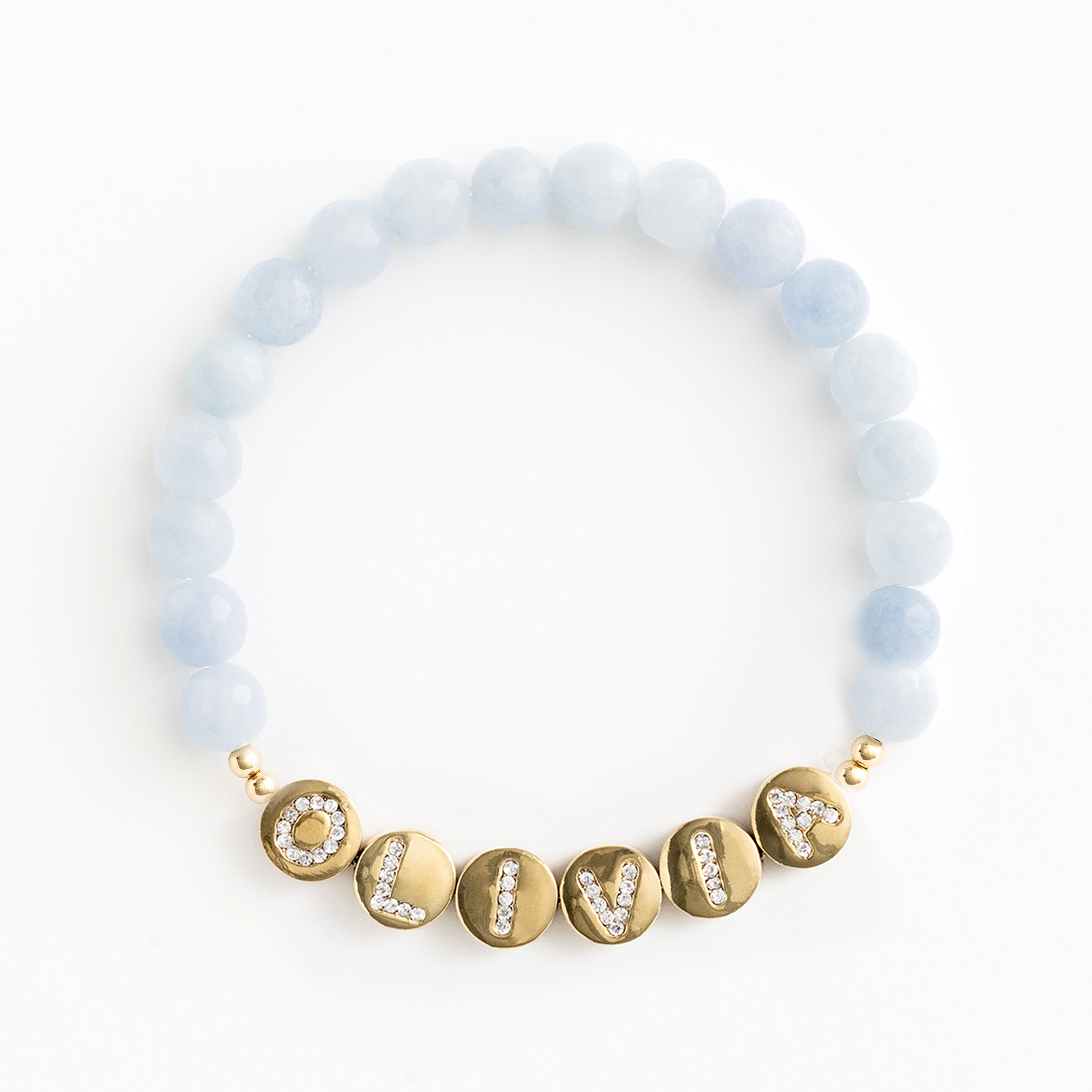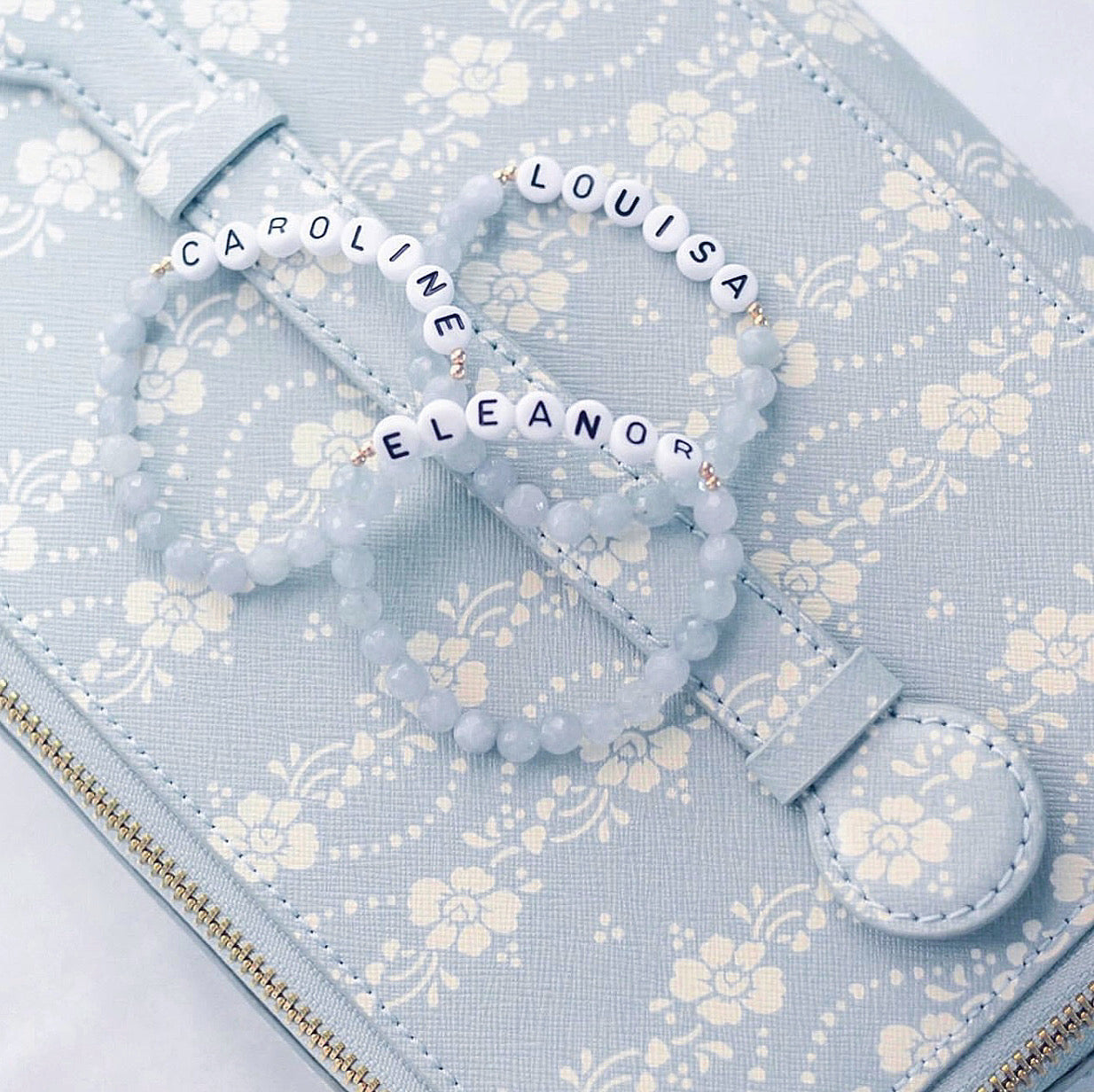 Love this color blue so much. Purchased it for my sonβs name and I am in love. The color goes so well with my stack and I wear it daily. My first one broke so I purchased another to replace ! Love this bracelet so much