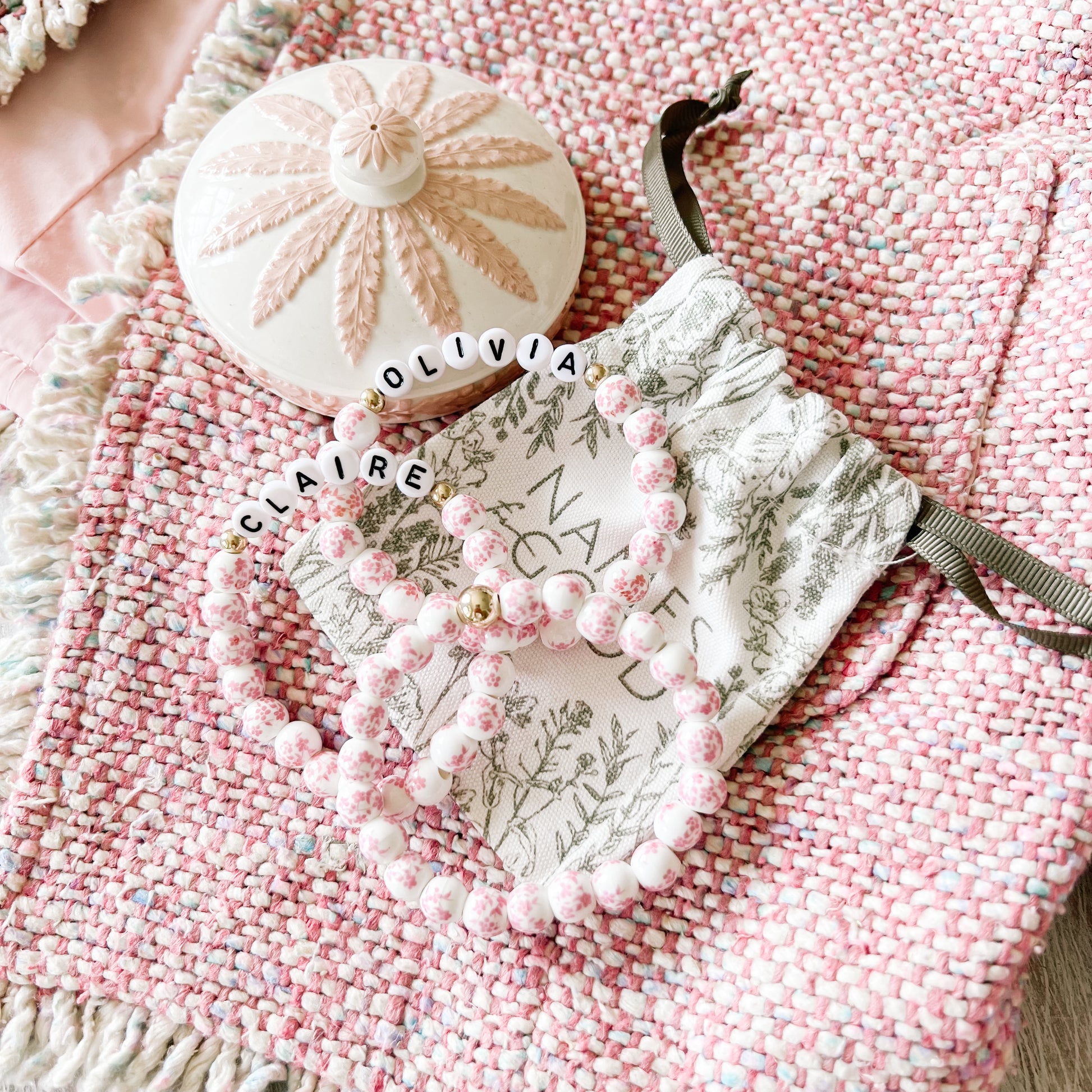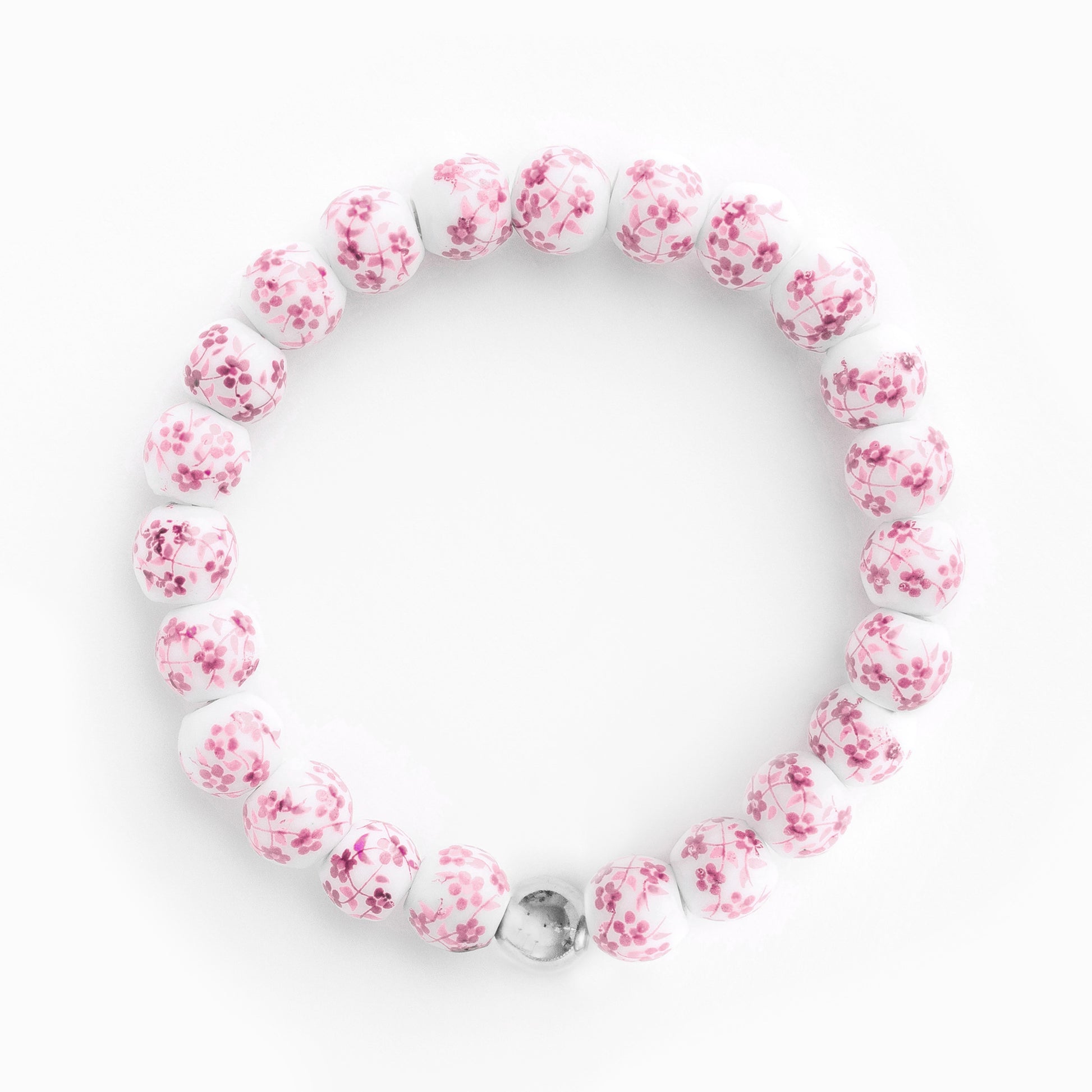 8mm pink porcelain floral beads with choice of 14K gold filled or sterling silver 8mm bead.