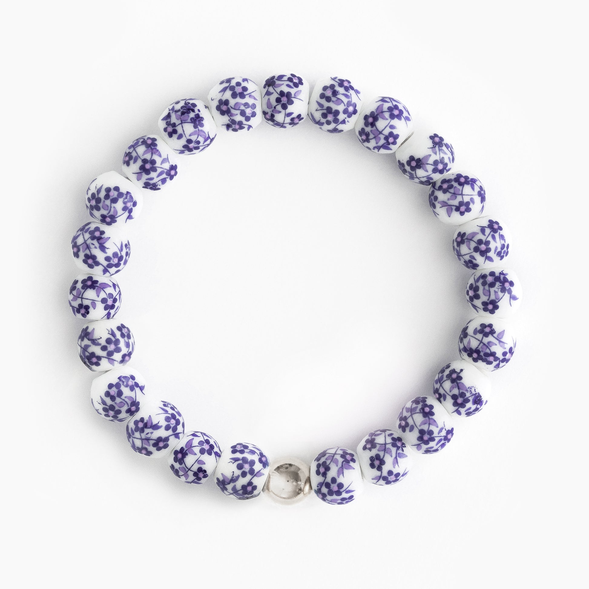 8mm purple porcelain floral beads with choice of 14K gold filled or sterling silver 8mm bead.