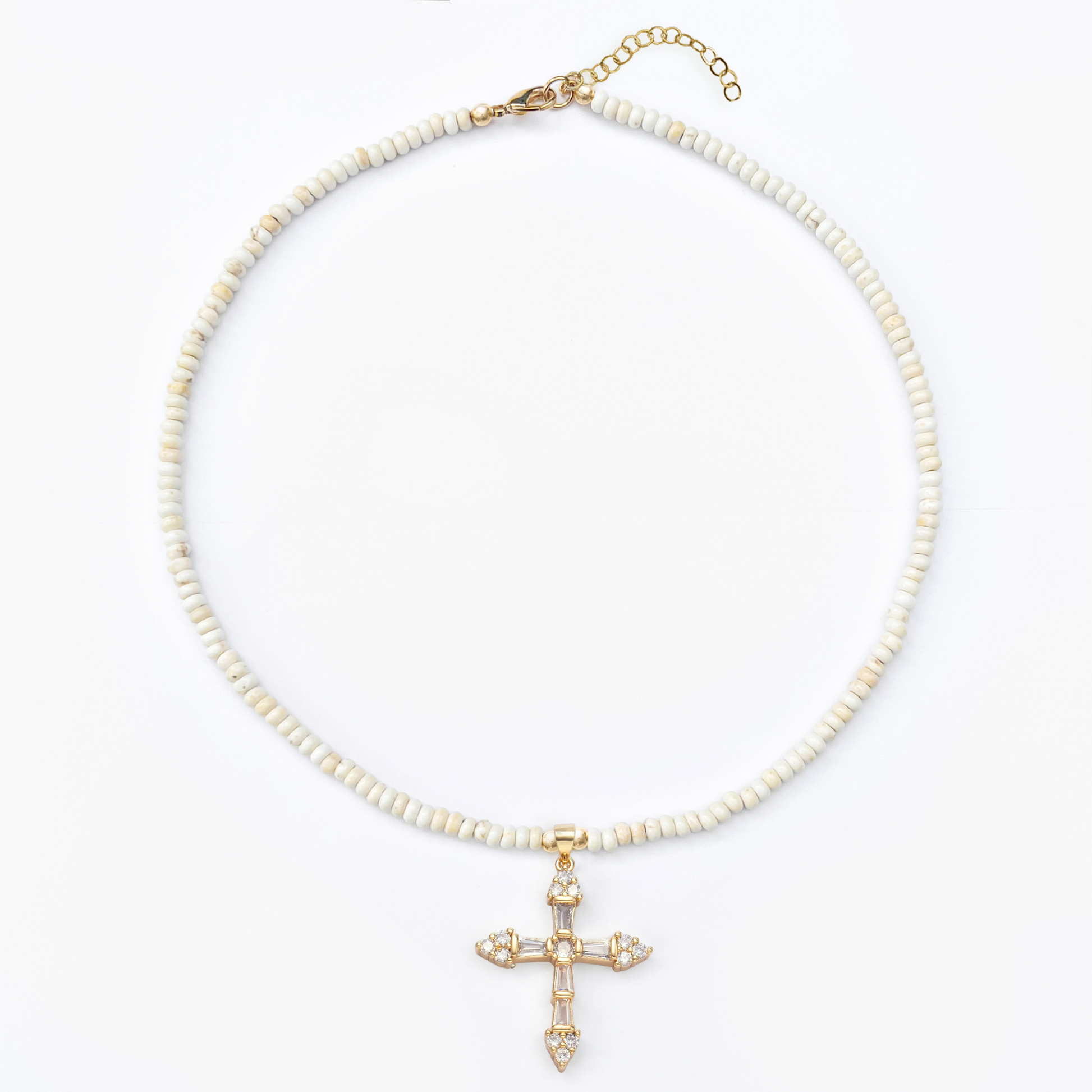 2x4mm natural viriscite stone beads (16"+2") with gold filled cross charm (~40 mm)
