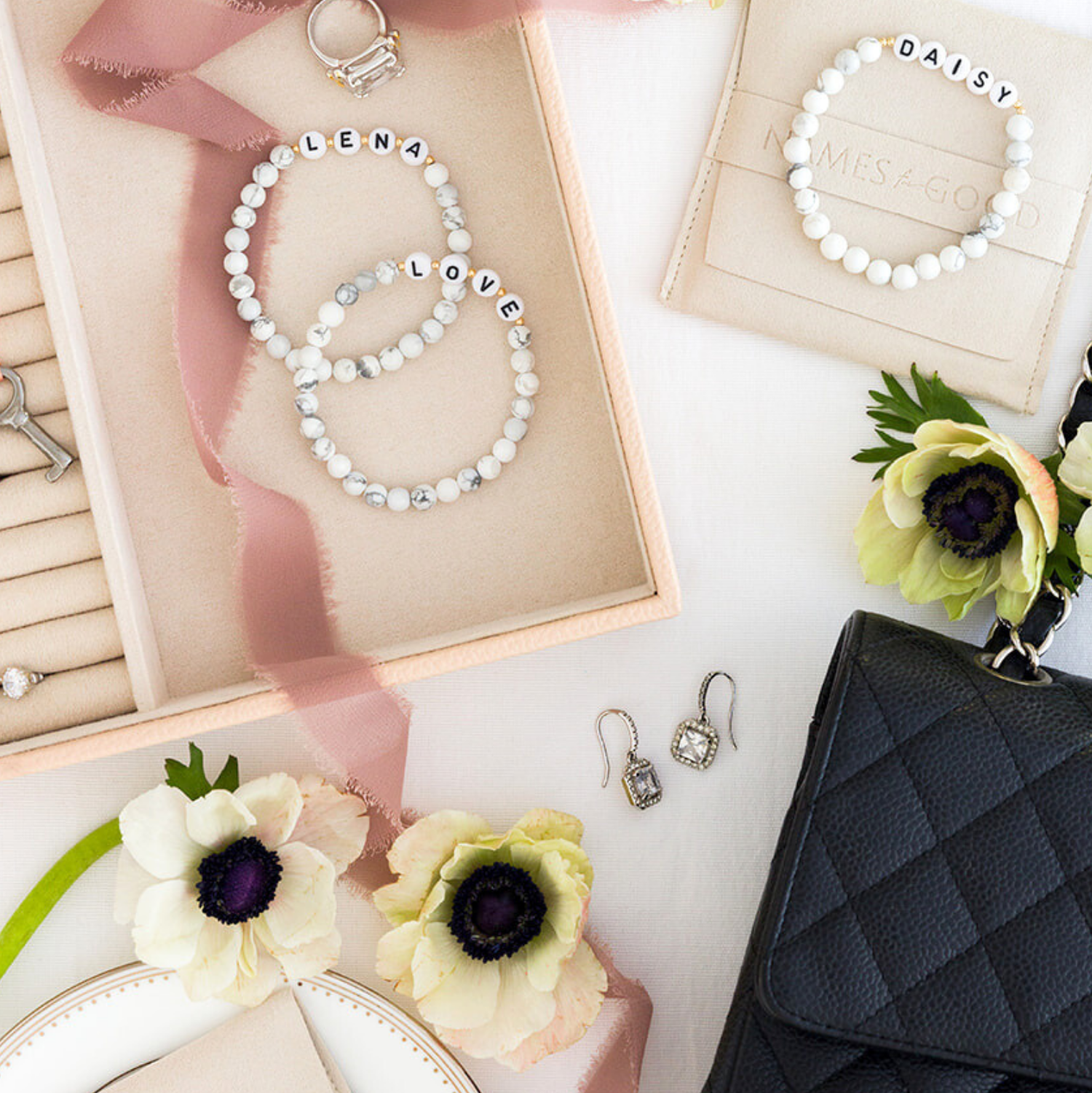 ♡ 10 characters max. Any space input will be represented by a heart or spacer bead depending on letter style.