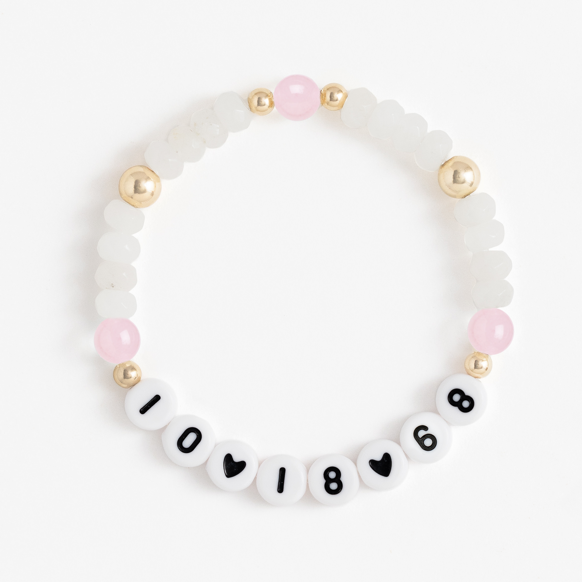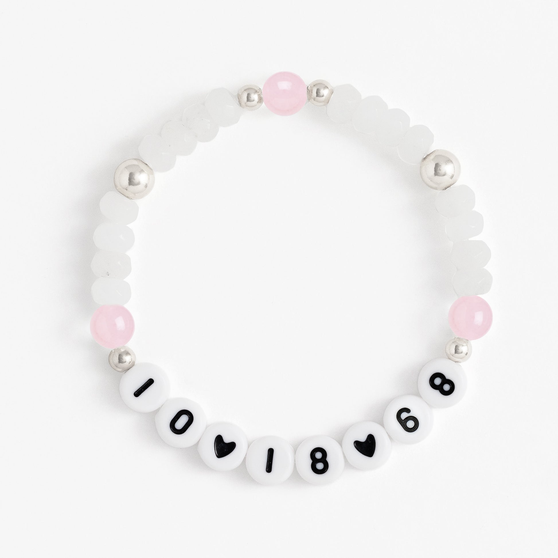♡ 10 characters max. Any space input will be represented by a heart or spacer bead depending on letter style.