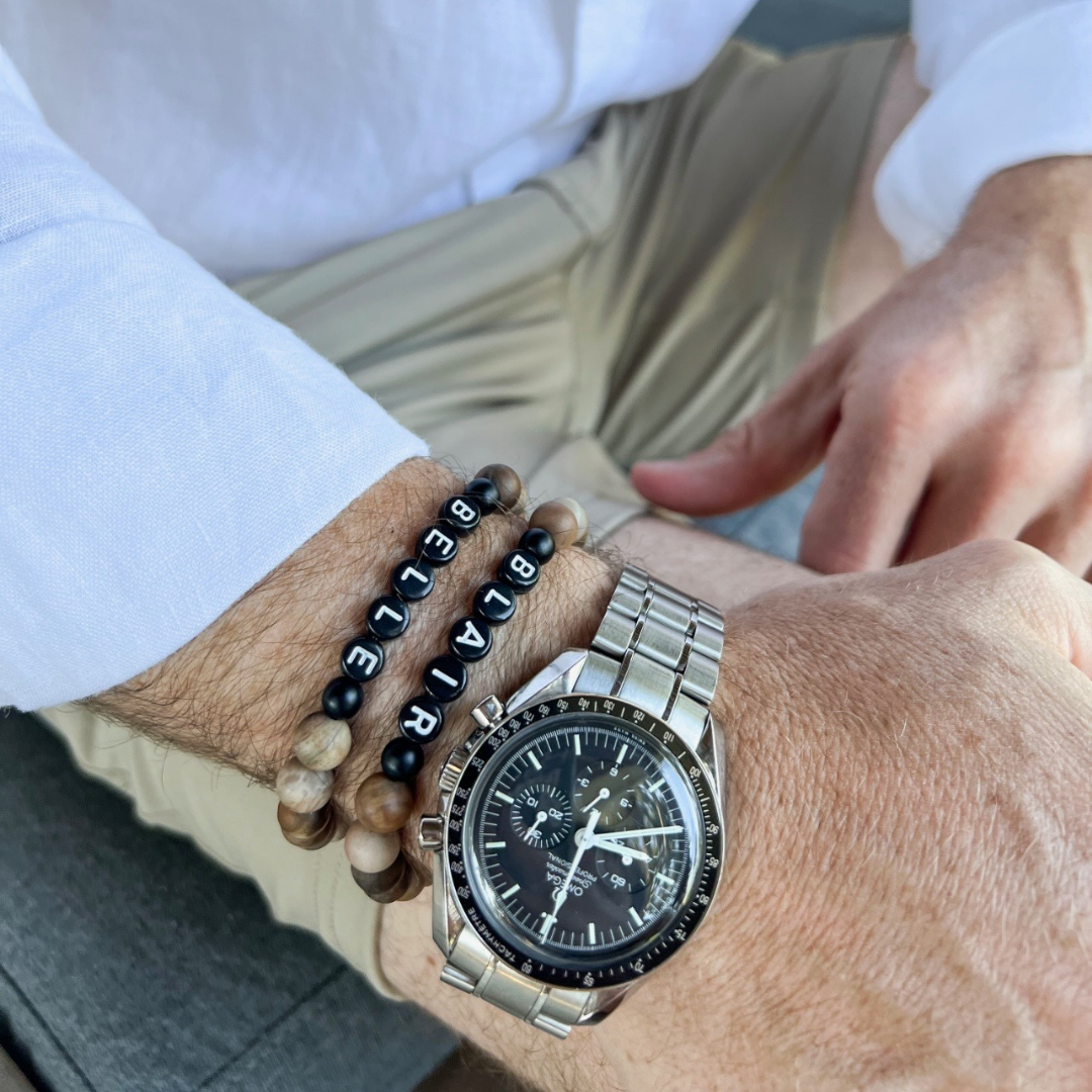 β‘ 10 characters max. All spaces will be represented by a 4mm Black Onyx bead.